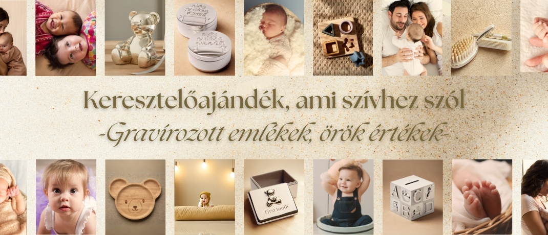 Egyedi gravírozott ajándék választás keresztelőre nagyszülőktől, ezüstözött és fa ajándéktárgyak, praktikus baba és gyermek használati tárgyak