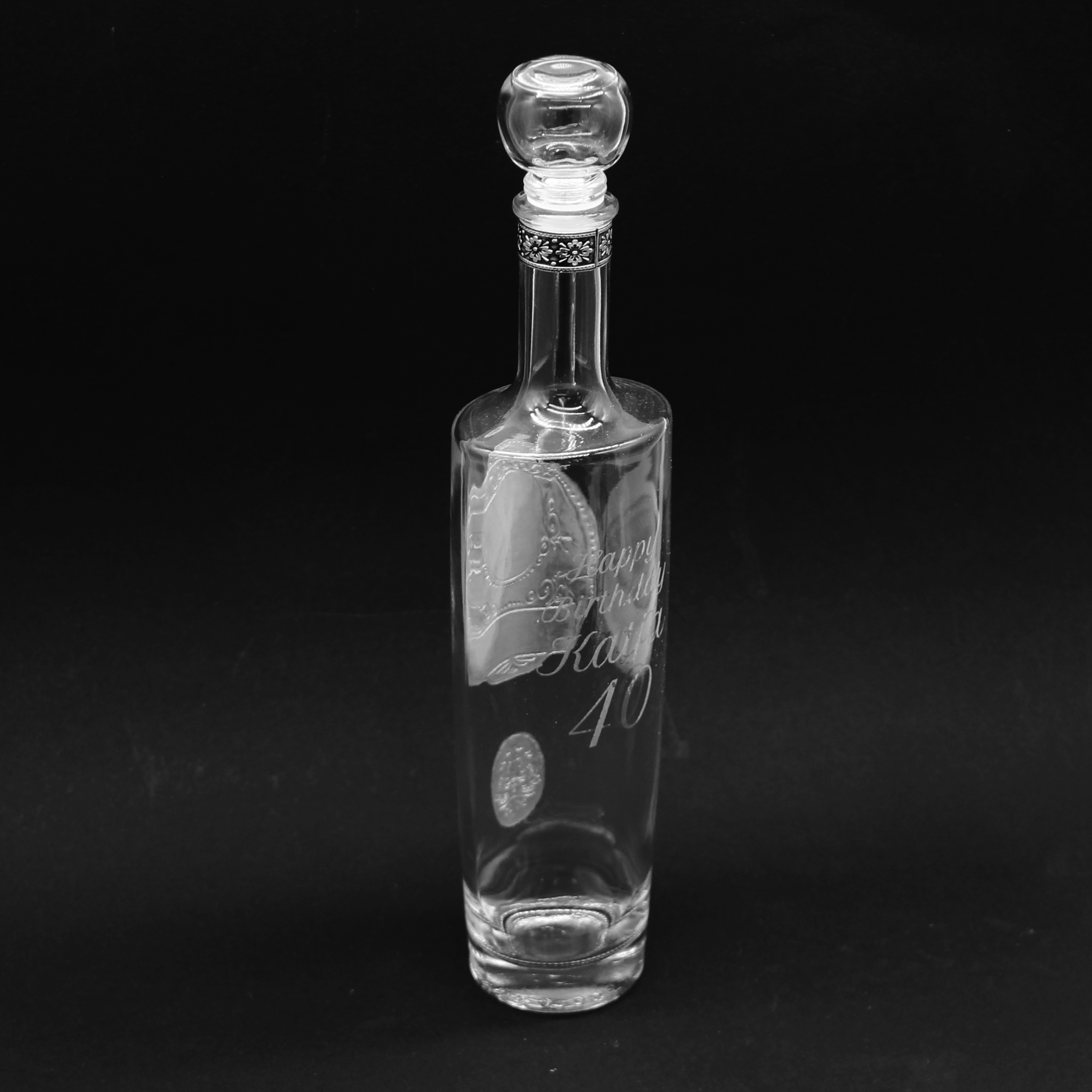 Az kért szöveg az üvegen matt fehér színnel jelenik meg, lézerrel készül és legoptimálisabb elrendezés szerint készítjük el a gravírozást. A megjegyzésben kérhető hogy az üveg elejére vagy hátsó oldalára kerüljön a felirat.