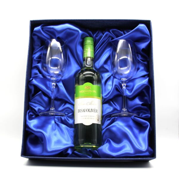 A képen látható bort a szett nem tartalmazza! A díszdobozban bármilyen standard méretű 0,75 literes bor elhelyezhető, de kínálatunkból is választhatsz.
