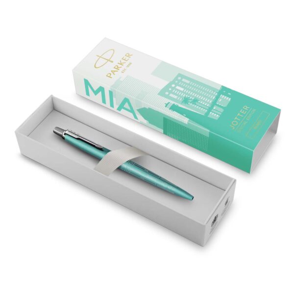 Limitált kiadású, Miami szimbolikus épületeit megjelenítő mentazöld Parker toll tökéletes ajándék gyűjtőknek és a különlegességeket értékelő férfiaknak és nőknek születésnapra, évfordulóra, névnapra egyaránt.