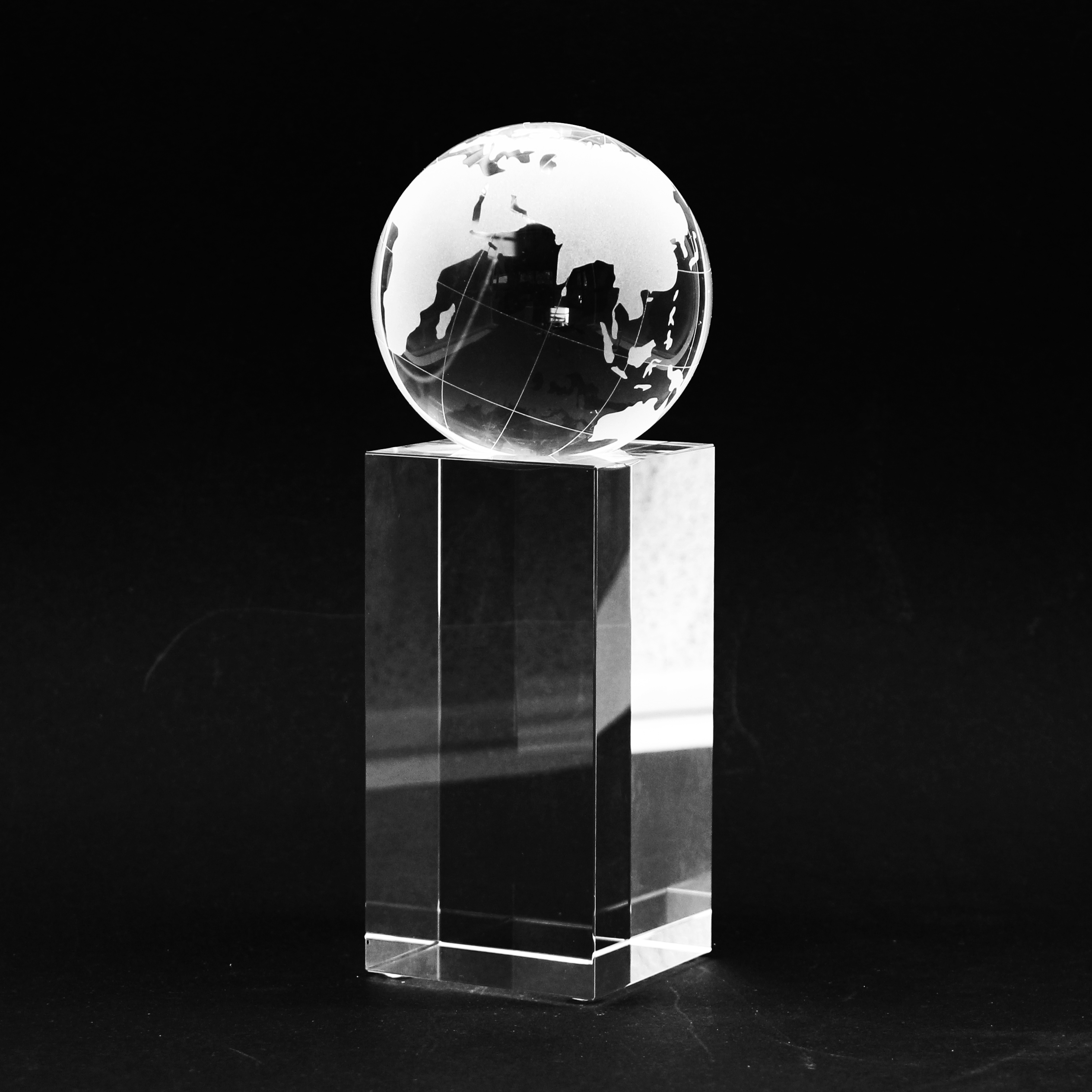Con 8 üvegkristály trófea földgömbbel díszdobozban